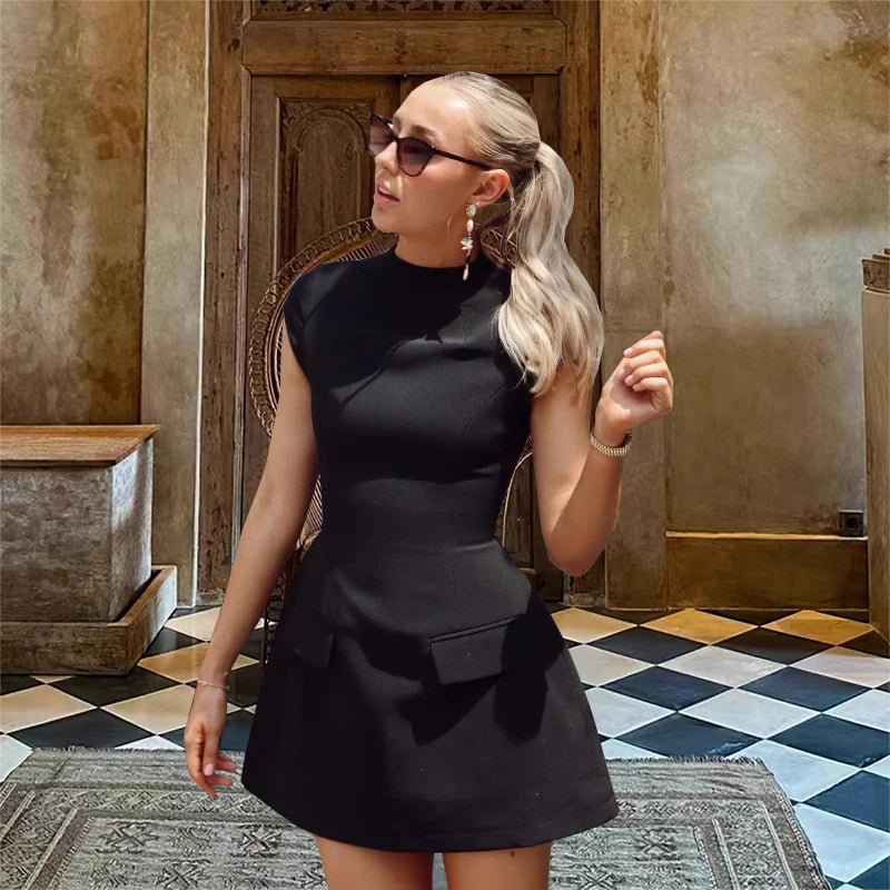 Summer 2025 Elegant Mini Dress Women Solid Fashion Sexy Party Club Slim Short Sleeve A Line Dresses Black Office Ladies Vestidos