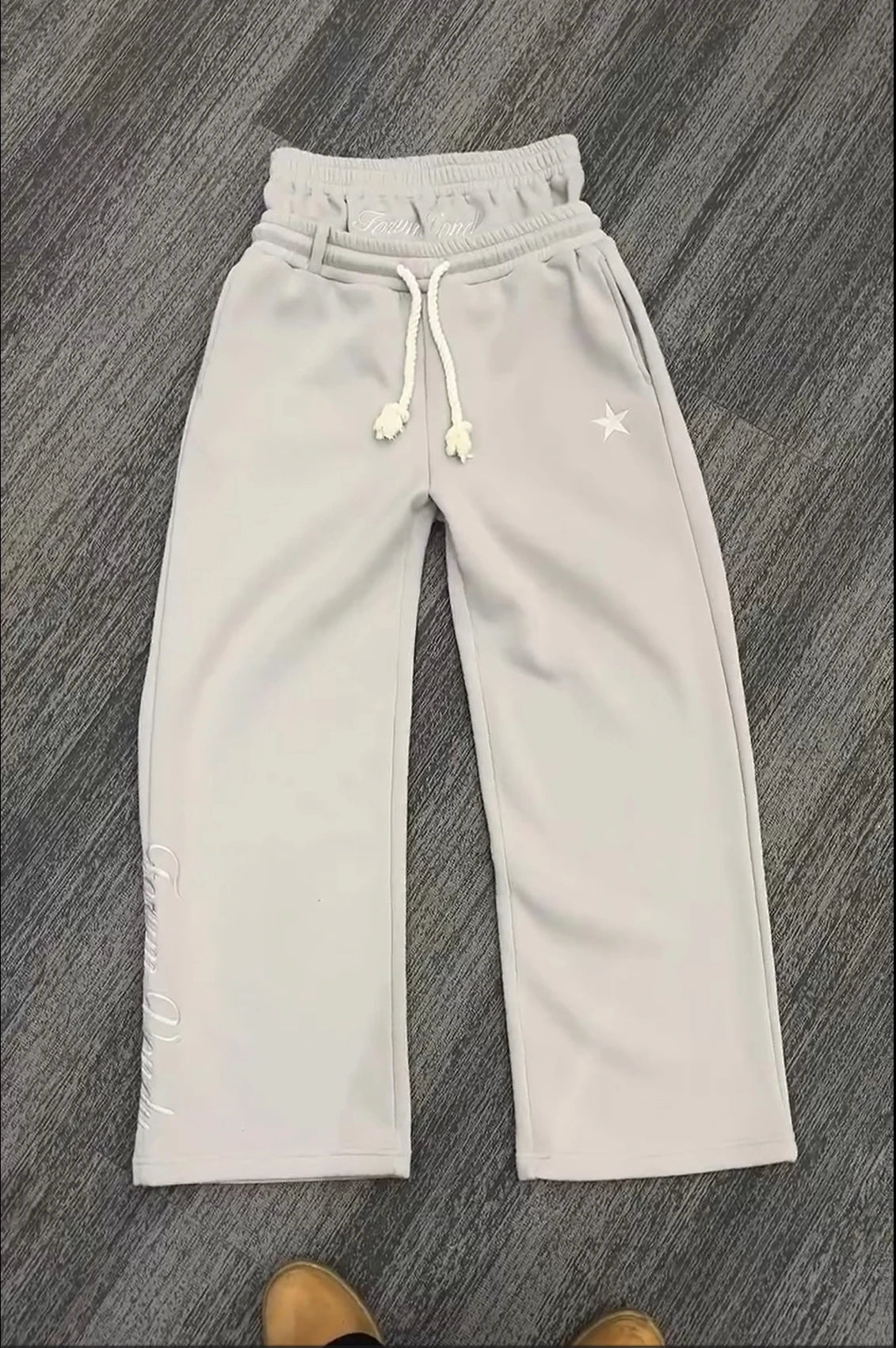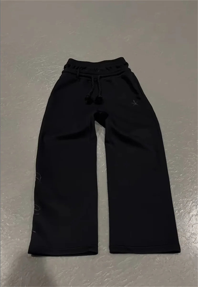 Unisex Fashion Fake Two Piece Pants 2025 Spring Double Waist Joggers Sweatpants Loose Drawstring Pants Embroidered Waist Pants