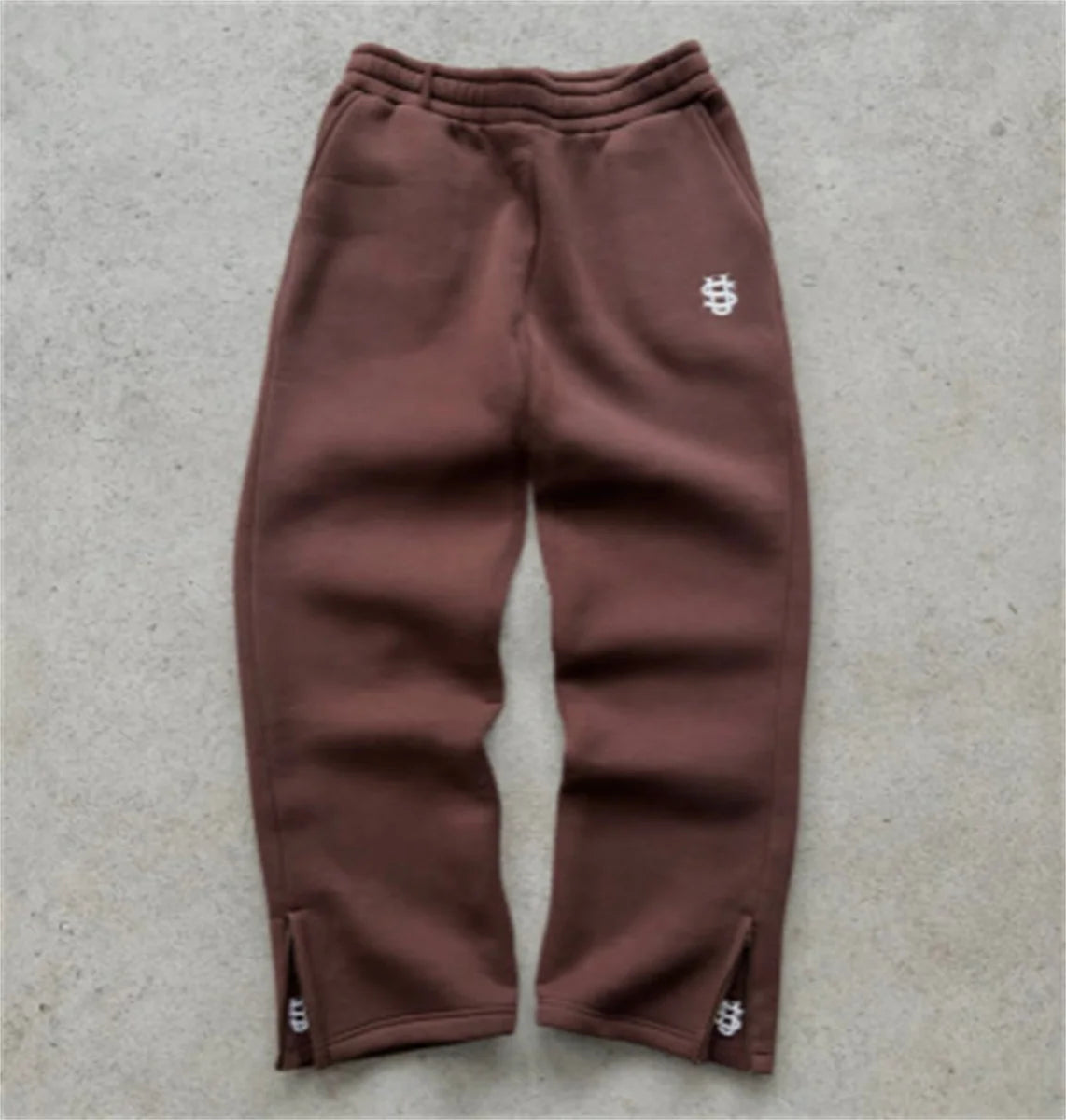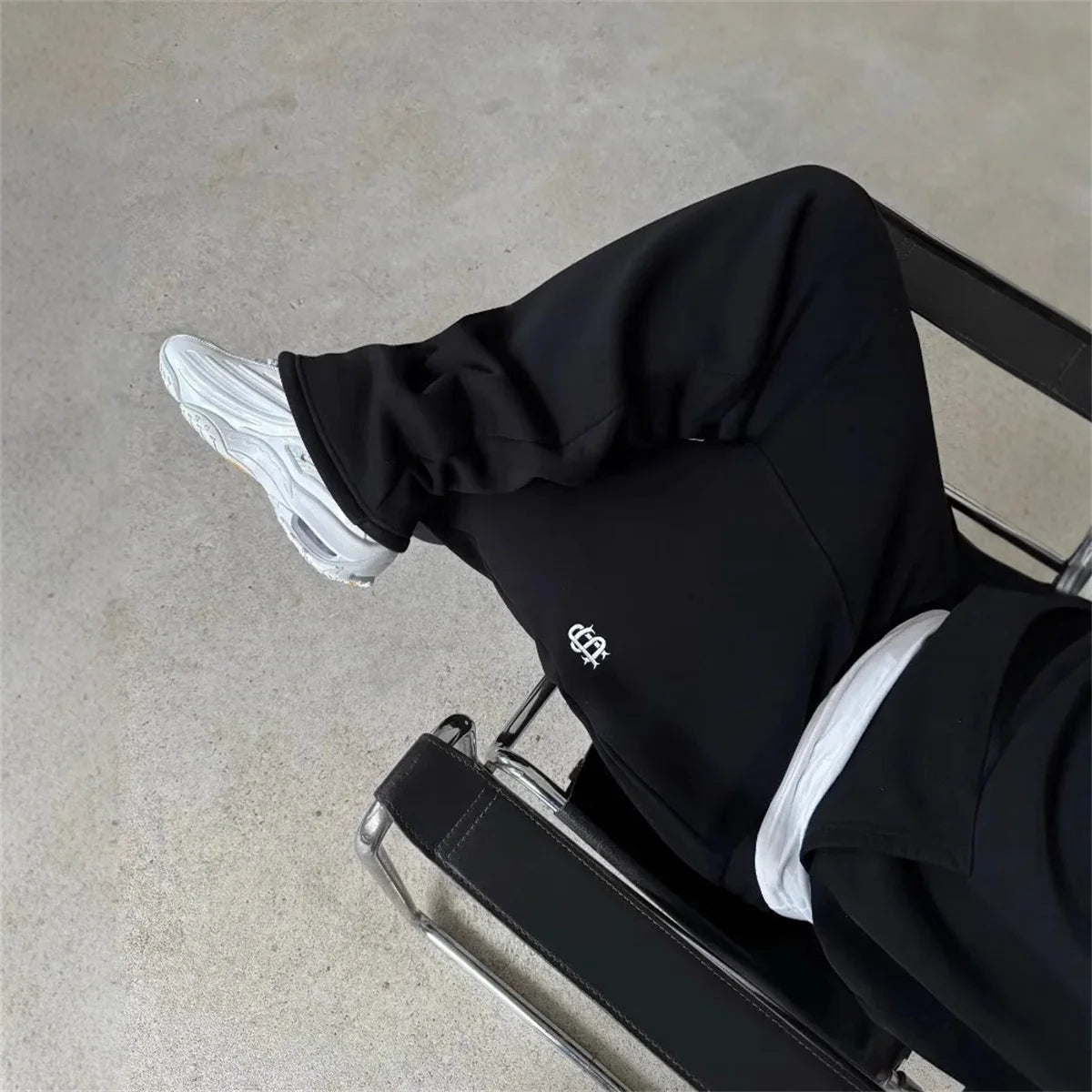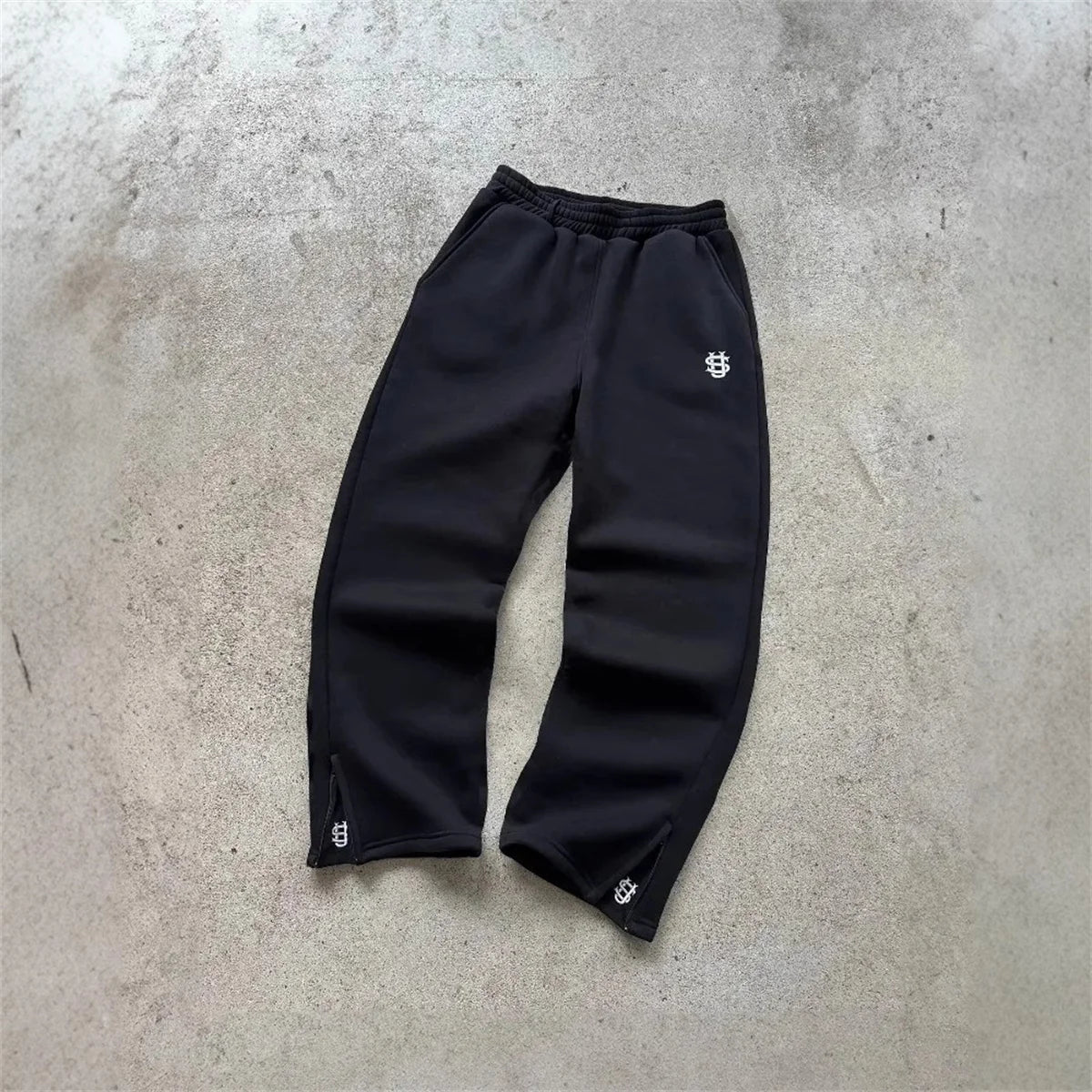 Y2K Retro Loose Straight Pants Unisex Tracksuit Pants Personalized Leg Zipper Embroidery Design Hip Hop Harajuku Casual Pants
